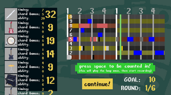 collect instruments, attempt to play them well, and make a loop that scores the most points! (or just one you like the sound of)